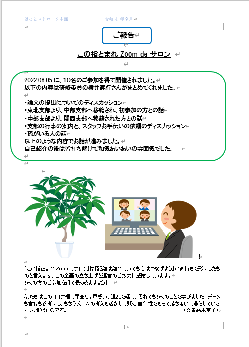 ほっとストローク中部 2022年9月