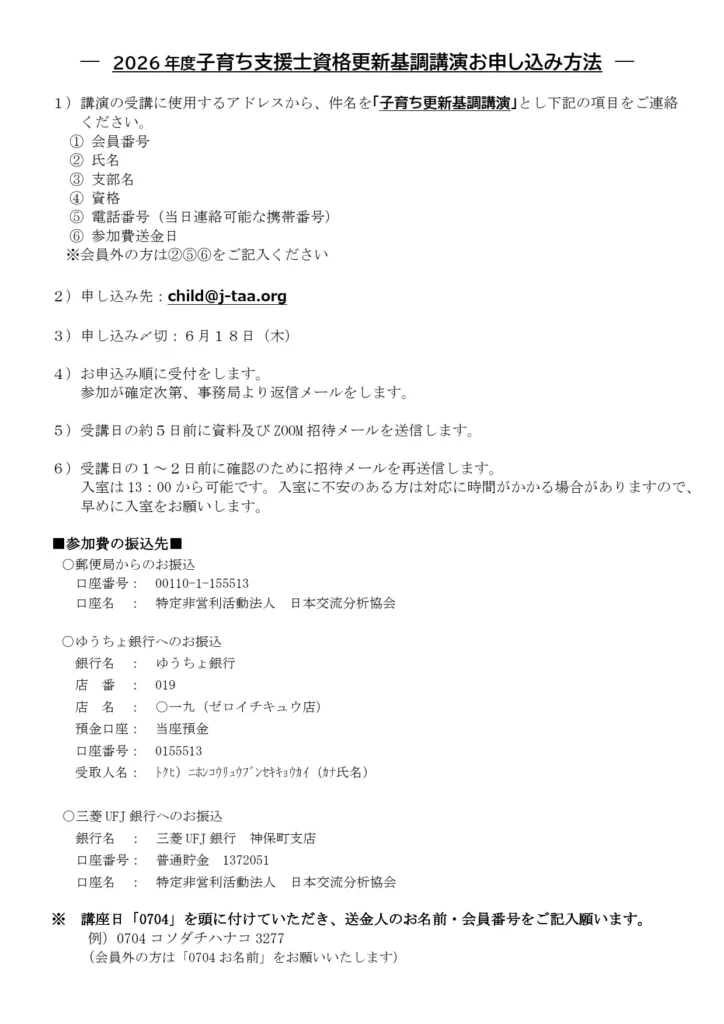 2026年度子育ち支援士資格更新研修に合わせた基調講演を7/4に行うことになりました。